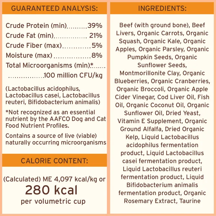 A complete & balanced, safe raw diet. Available in Adult & Puppy formulas, specially crafted with high-quality proteins & certified organic produce for tailored, whole-food nutrition. Easy to useโjust scoop, hydrate, and serve!