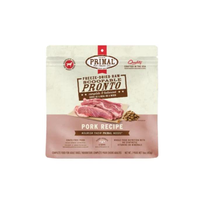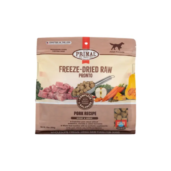 Primal Freeze Dried Dog Food Pronto Pork Recipe is a high-quality, grain-free raw dog food that is crafted in the USA. This 16 oz pack is perfect for pet owners who want to provide their dogs with a nutritious and delicious meal. The recipe features real pork as the main ingredient, ensuring that your dog gets the protein they need. The freeze-dried process helps to preserve the natural flavors and nutrients of the ingredients. Give your furry friend the best with Primal Freeze Dried Dog Food Pronto Pork Recipe.
