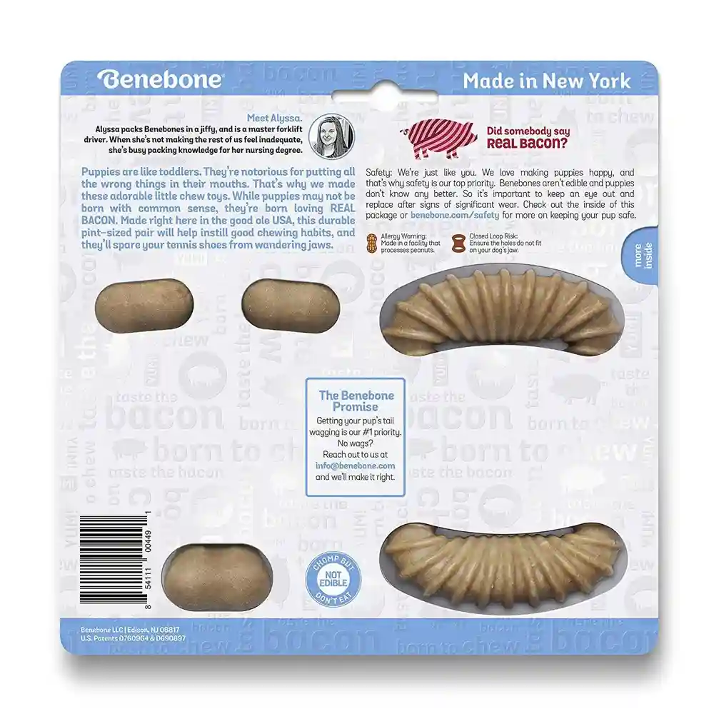 - Just a Wee Bit Softer for Your Teething Pup ‰ۡÌÝÌÕ Just because you‰ۡó»re a puppy doesn‰ۡó»t mean you can‰ۡó»t be part of the Benebone fun. We designed these cute little chew toys with the same great flavor and quality, with just a teeny bit of softness for your teething pup (under 15 lbs). Since puppies weren‰ۡó»t born with thumbs, our curved Wishbone and Dental Chew always give your new pup the perfect opportunity for a good grip.