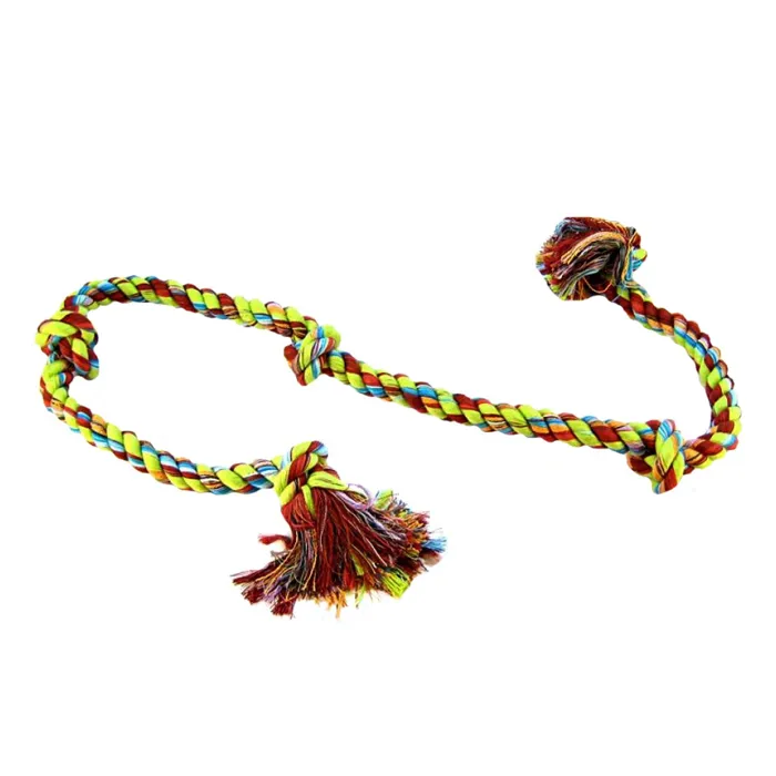 Mammoth Flossy Chews Cottonblend Color 5-Knot Rope Tug is perfect for interactive play with your dog in games like tug-of-war or fetch. Rope colors may vary.